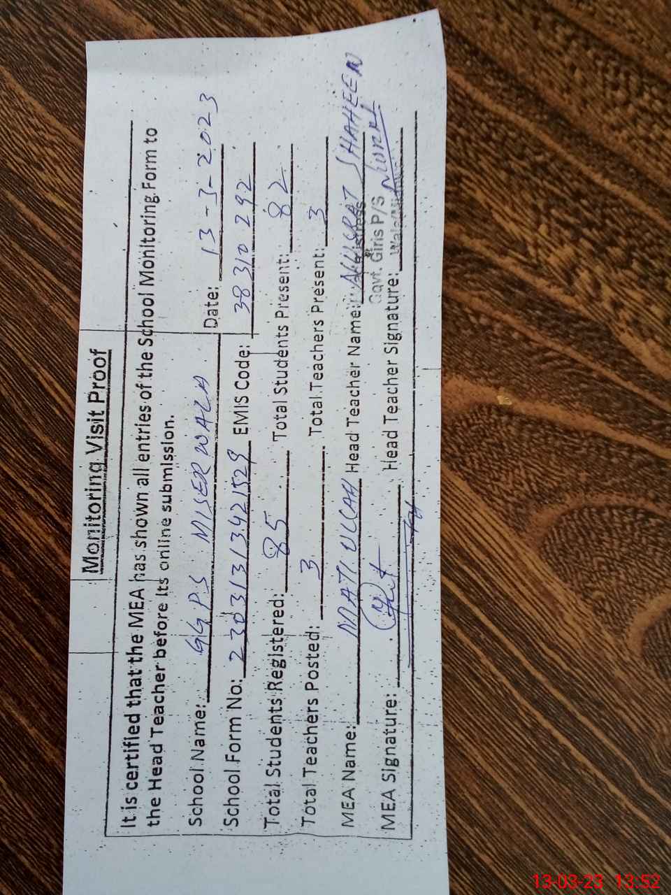 | EMIS Code: 38310292 | Name of School: GGPS MISER WALA | |||
