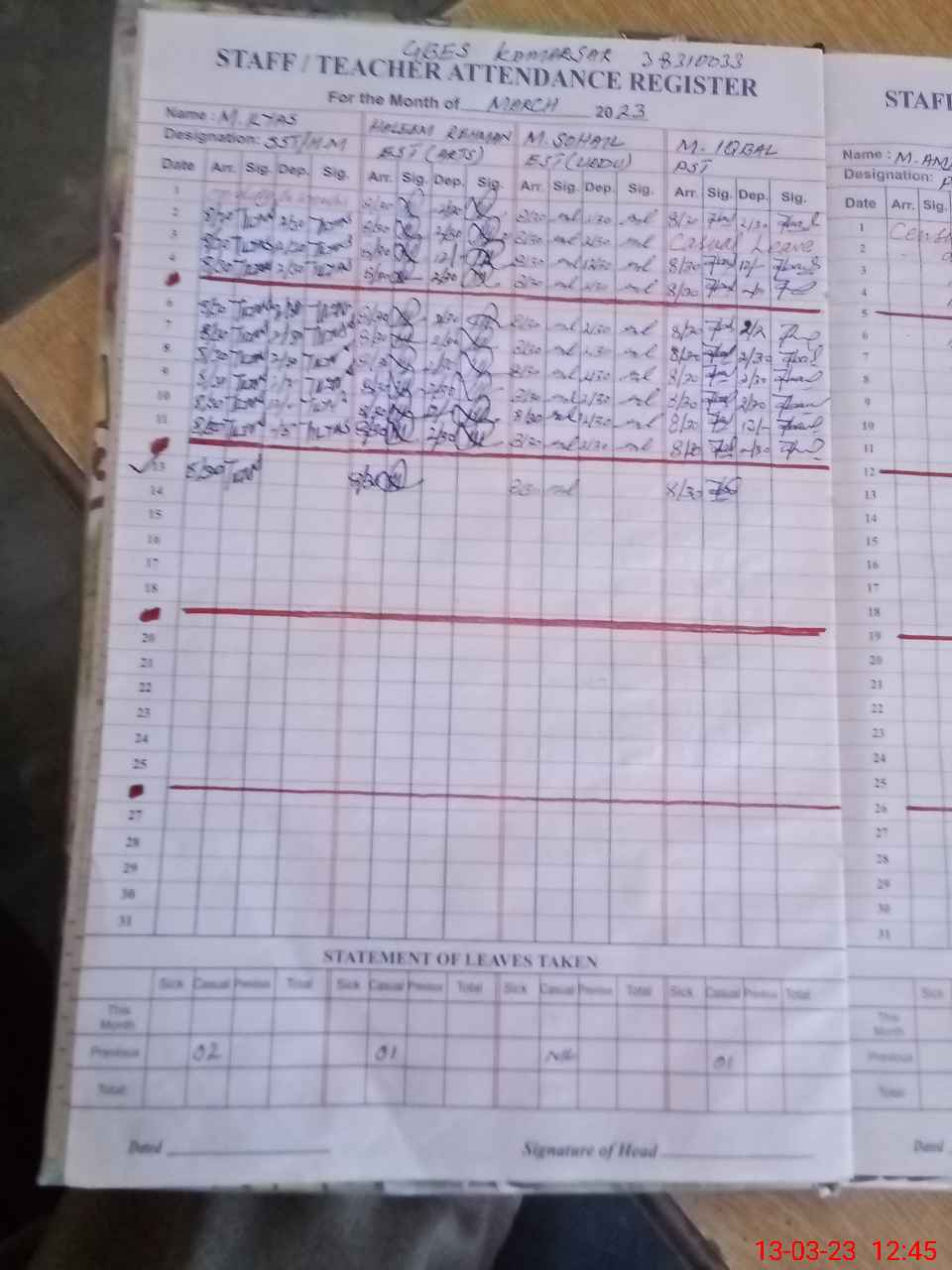 | Name: HA**** RE**** Designation: (School Headmaster's/Headmistress's) EST Phone/Cell Number: 03**** |