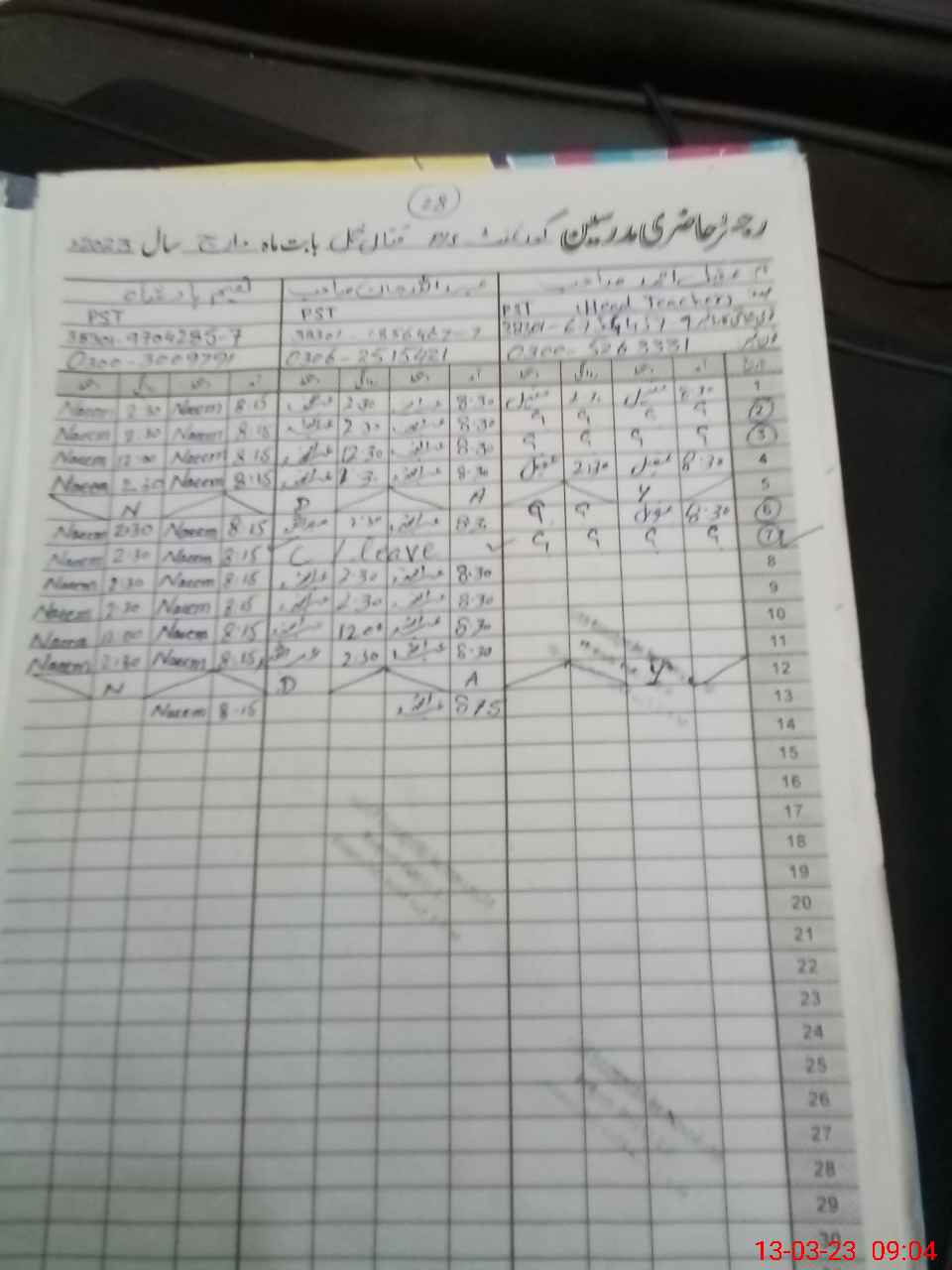| Name: Mu**** Na**** Designation: (School Headmaster's/Headmistress's) PST Phone/Cell Number: 03**** |