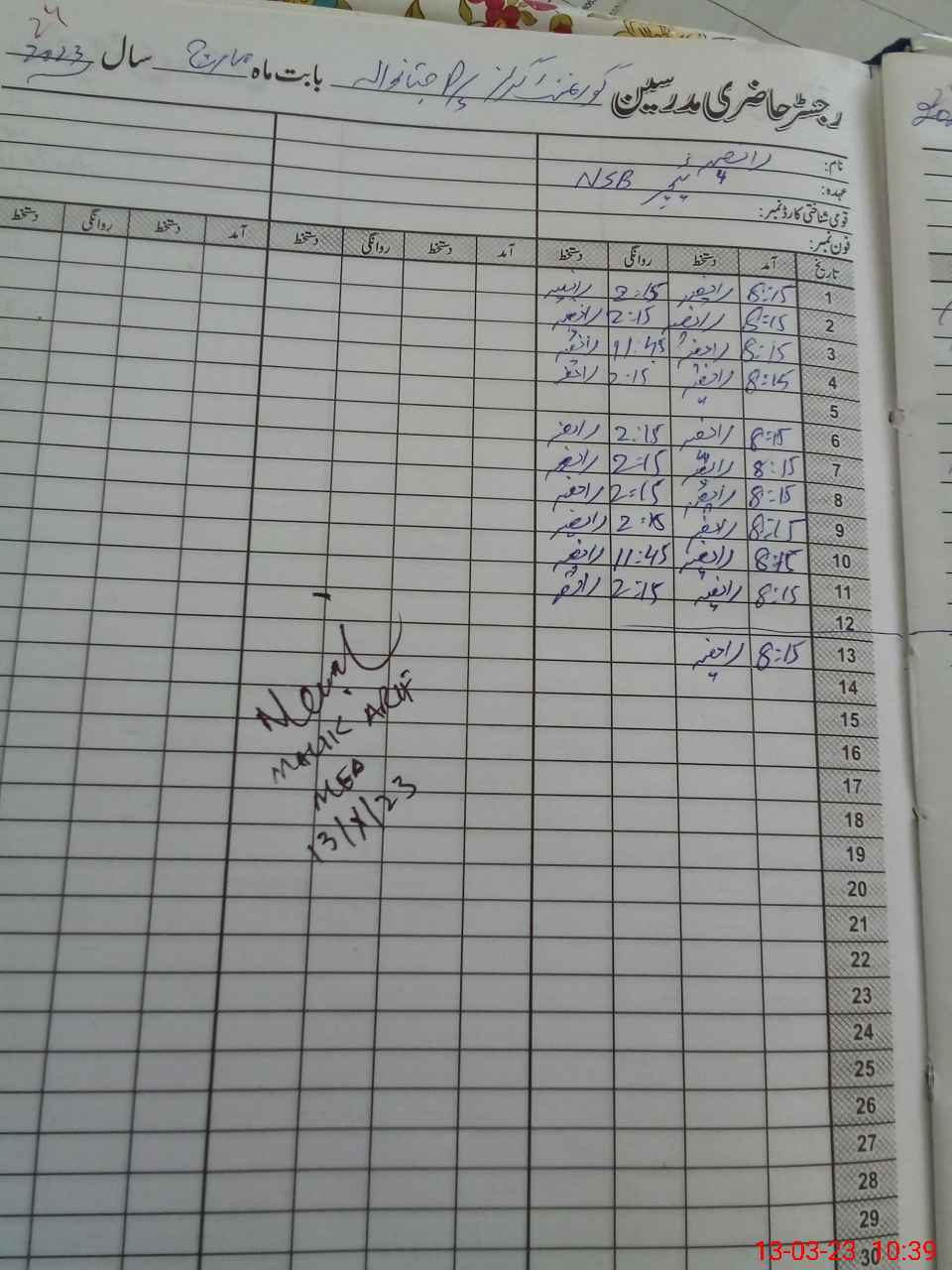 | Name: Na**** Ka**** Designation: (School Headmaster's/Headmistress's) PST Phone/Cell Number: 03**** |