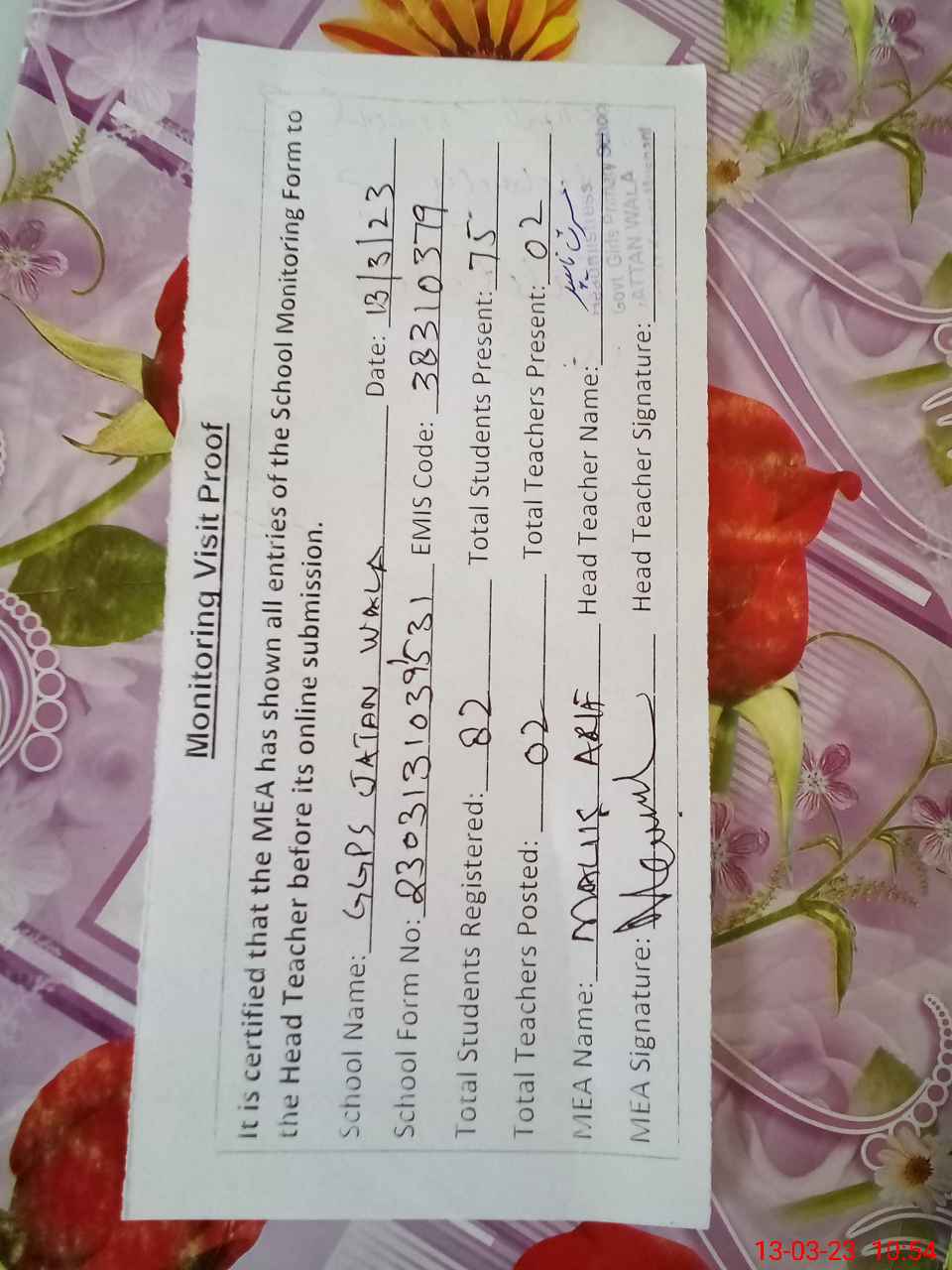 | EMIS Code: 38310379 | Name of School: GGPS JATAN WALA | |||