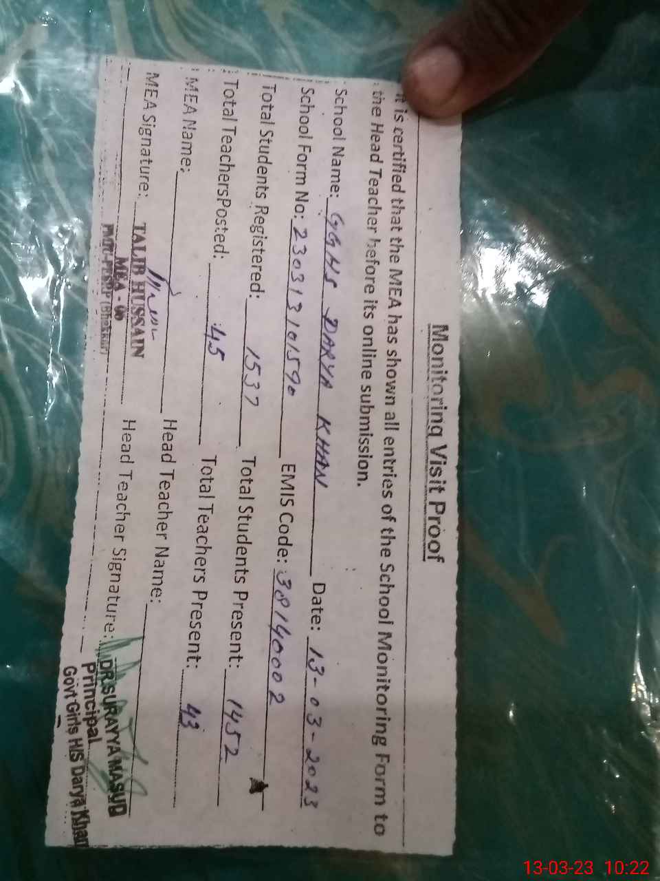 | EMIS Code: 38140002 | Name of School: GGHS DARYA KHAN | |||