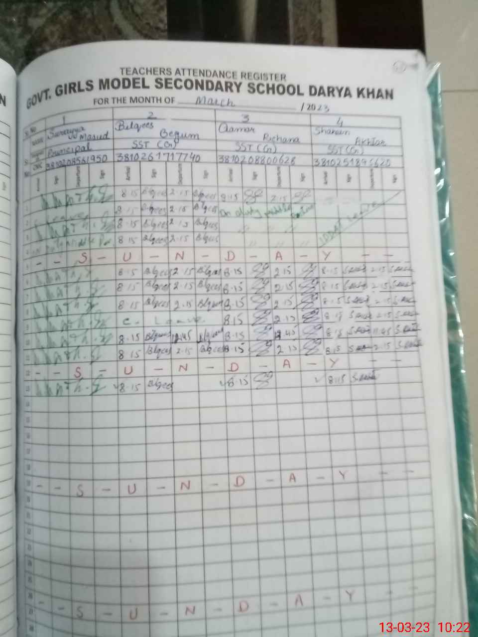 | District: BHAKKAR | Tehsil: DARYA KHAN | Markaz: SECONDARY-WING | Level: High | |