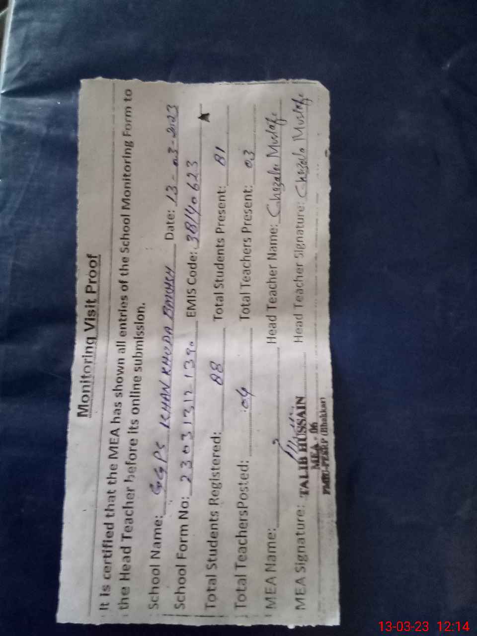 | EMIS Code: 38140623 | Name of School: GGPS KHAN KHUDA BUKHSH | |||