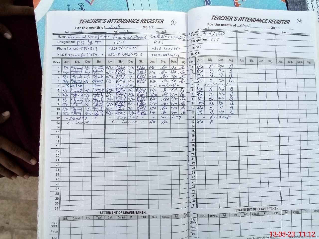 | Name: KH**** Designation: (School Headmaster's/Headmistress's) PST Phone/Cell Number: 03**** |
