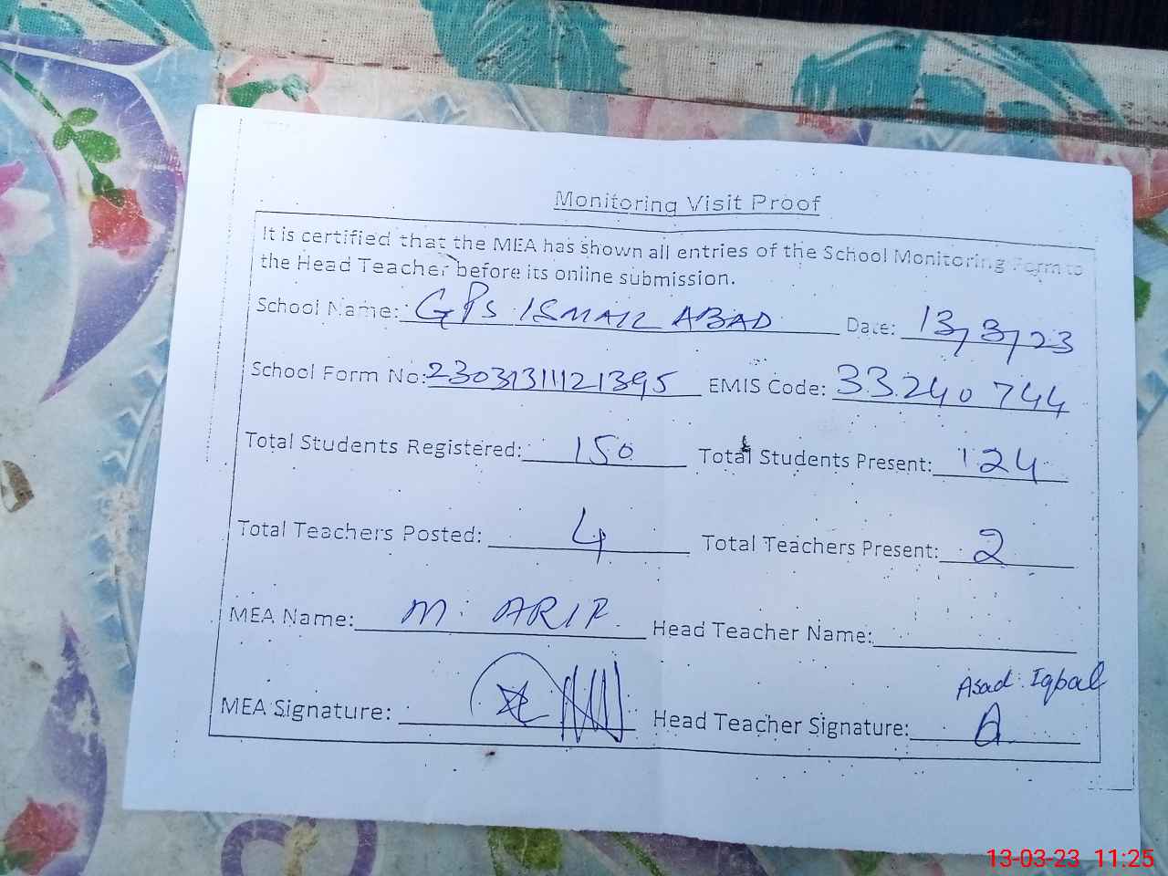 | EMIS Code: 33240744 | Name of School: GPS ISMAIL ABAD HASUU BALIL | |||