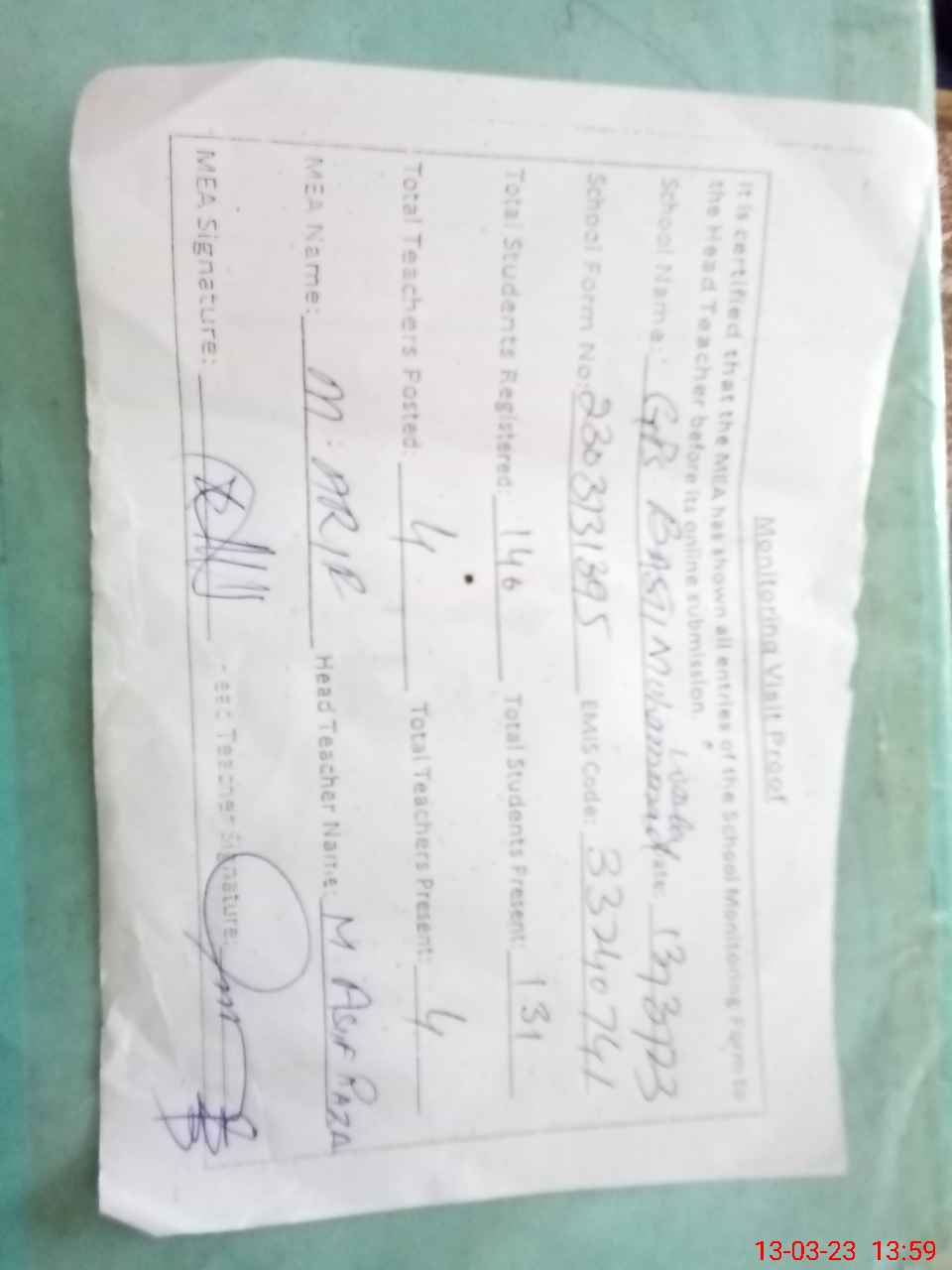 | EMIS Code: 33240741 | Name of School: GPS BASTI MOHAMMAD WALA | |||