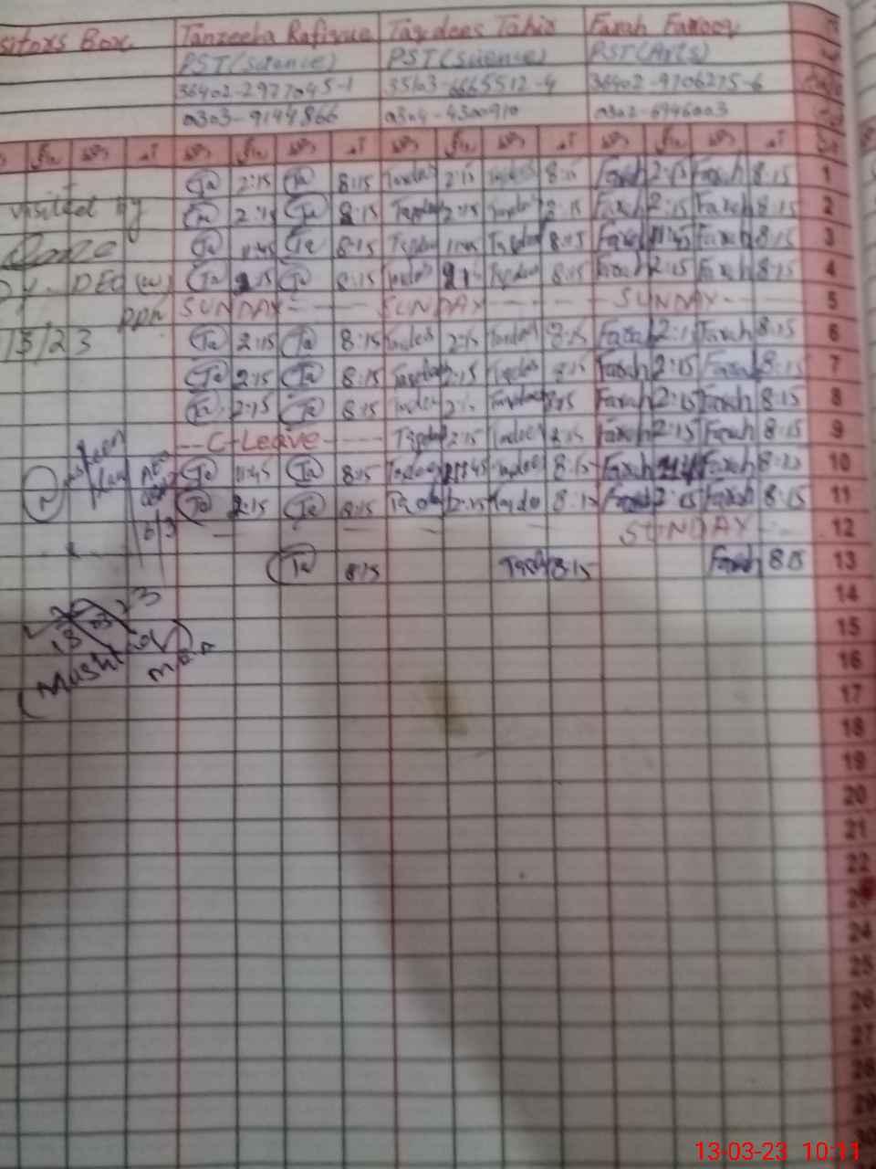 | Name: Ta**** Ra**** Designation: (School Headmaster's/Headmistress's) PST Phone/Cell Number: 03**** |