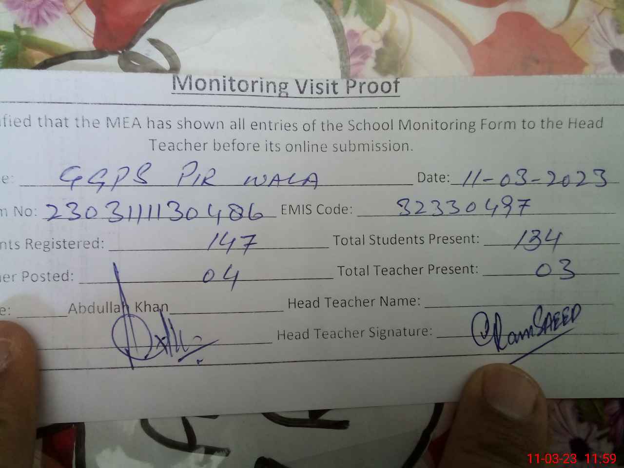 | EMIS Code: 32330497 | Name of School: GGPS PIR WALA | |||