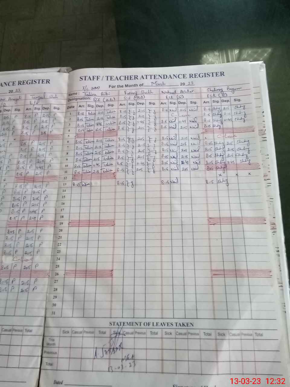 | Name: Ta**** Bi**** Designation: (School Headmaster's/Headmistress's) HEADMISTRESS Phone/Cell Number: 03**** |
