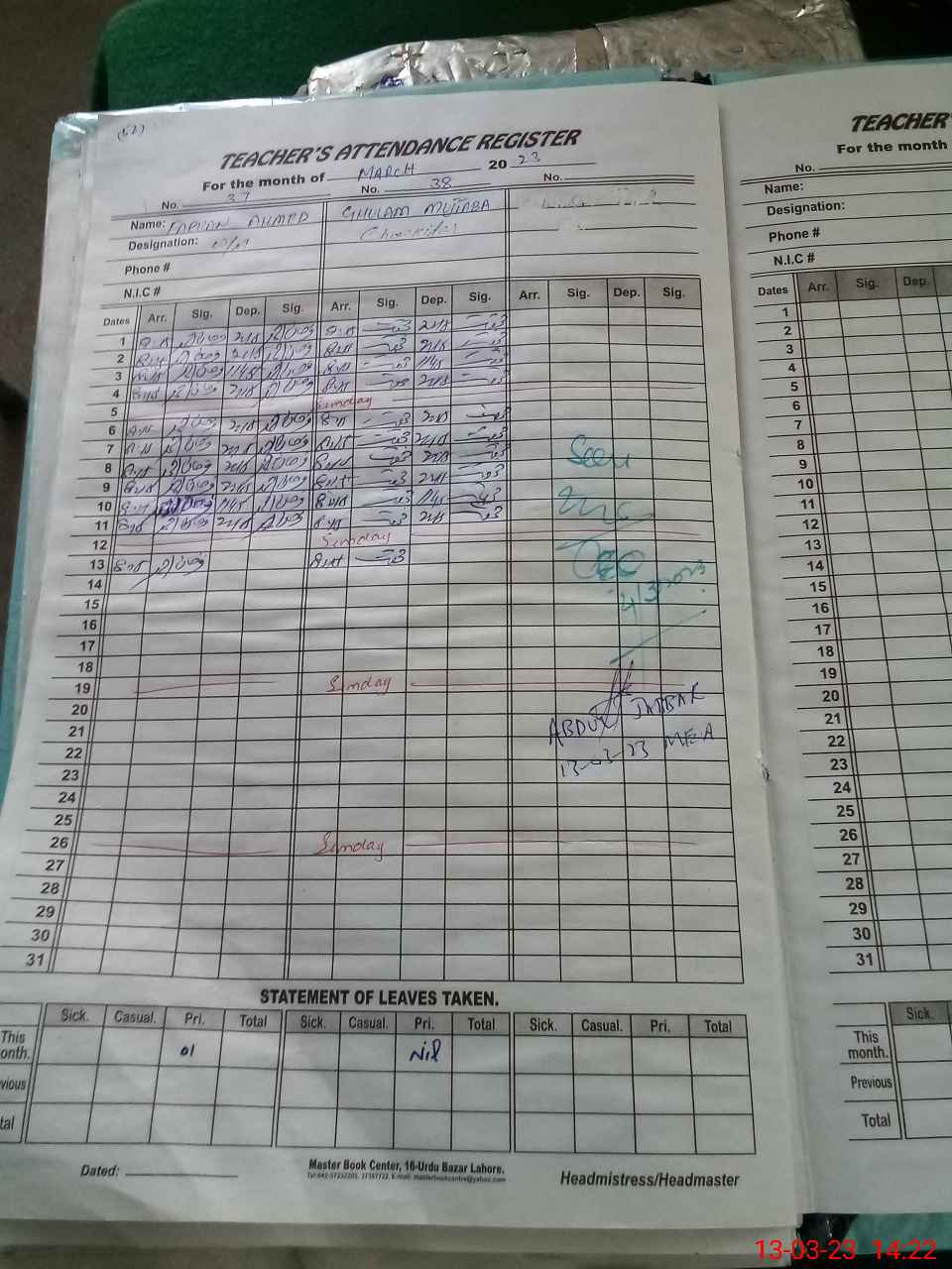| Name: Ai**** Kh**** Ha**** Designation: (School Headmaster's/Headmistress's) Sst Phone/Cell Number: 03**** |