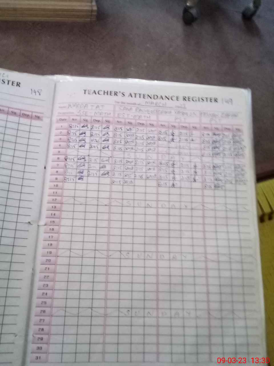 | Name: Sa**** Ra**** Designation: (School Headmaster's/Headmistress's) EST SM Phone/Cell Number: 03**** |
