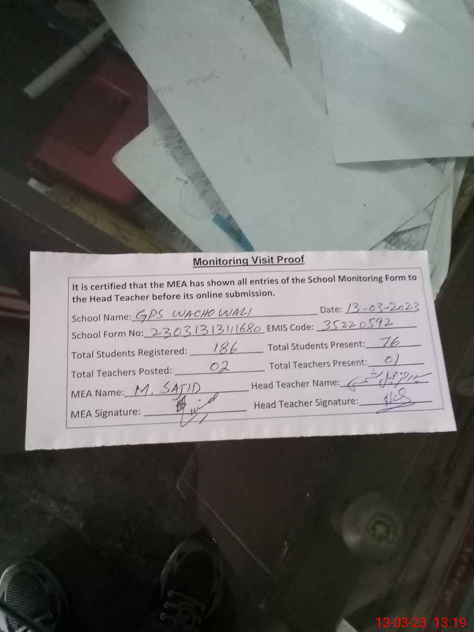 | EMIS Code: 35220592 | Name of School: GPS WACHO WAL (EX-MCL) | |||