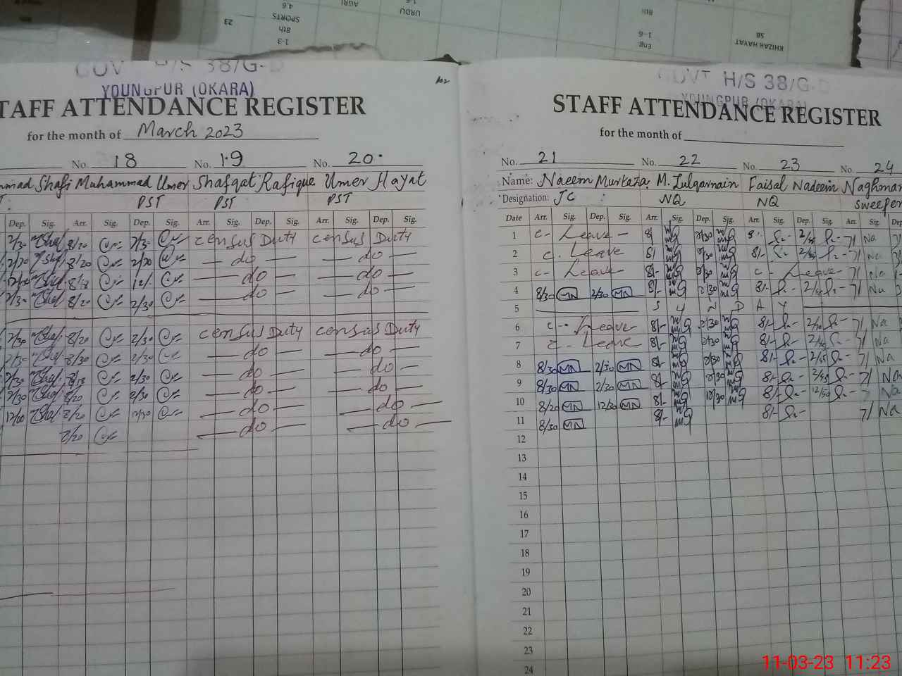 | CNIC | Full Name | Designation | R/C | Absence During Last Calender Month |