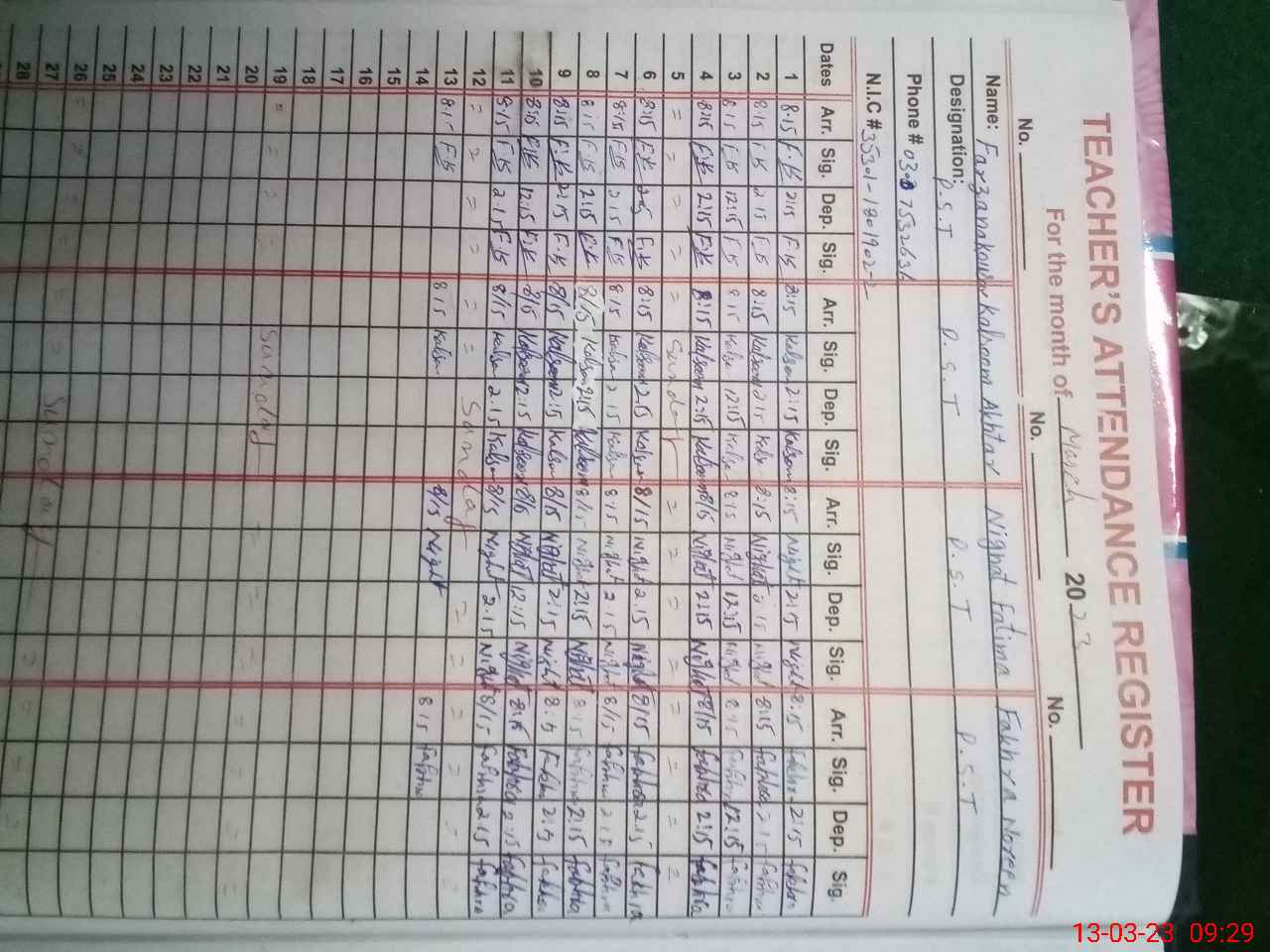 | Name: Mu**** Sh**** Designation: (School Headmaster's/Headmistress's) S.S.T.(Arts) Phone/Cell Number: 03**** |