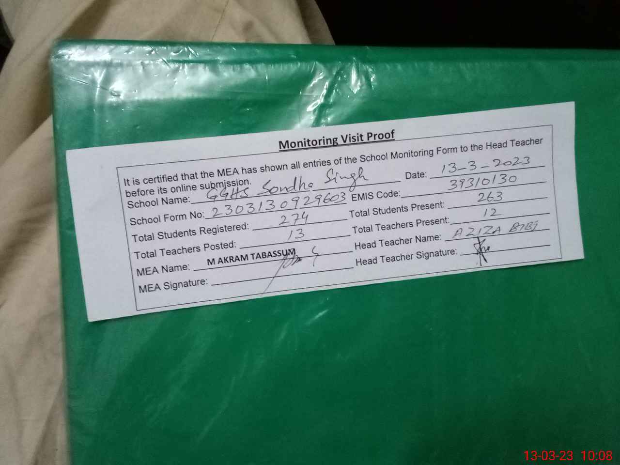 | EMIS Code: 39310130 | Name of School: GGHS SONDHA SINGH | |||
