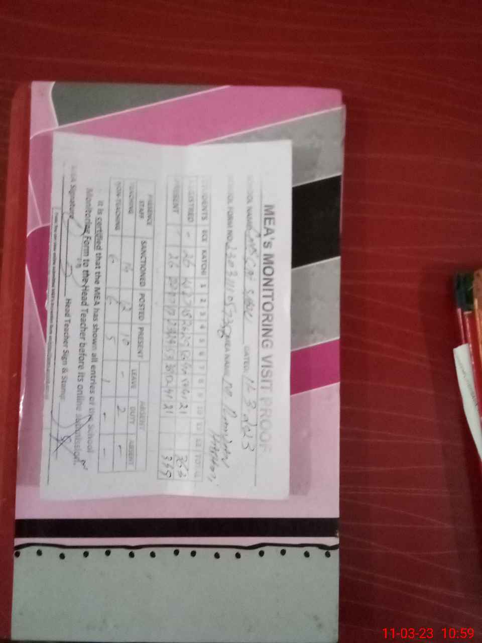 | Attendance Register | Head Teacher | MEA with School | Visit Proof |