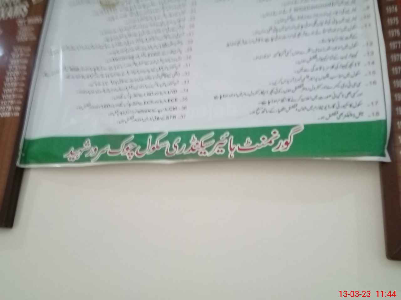 | EMIS Code: 32320001 | Name of School: GHSS CHOWK SARWAR SHAHEED | |||