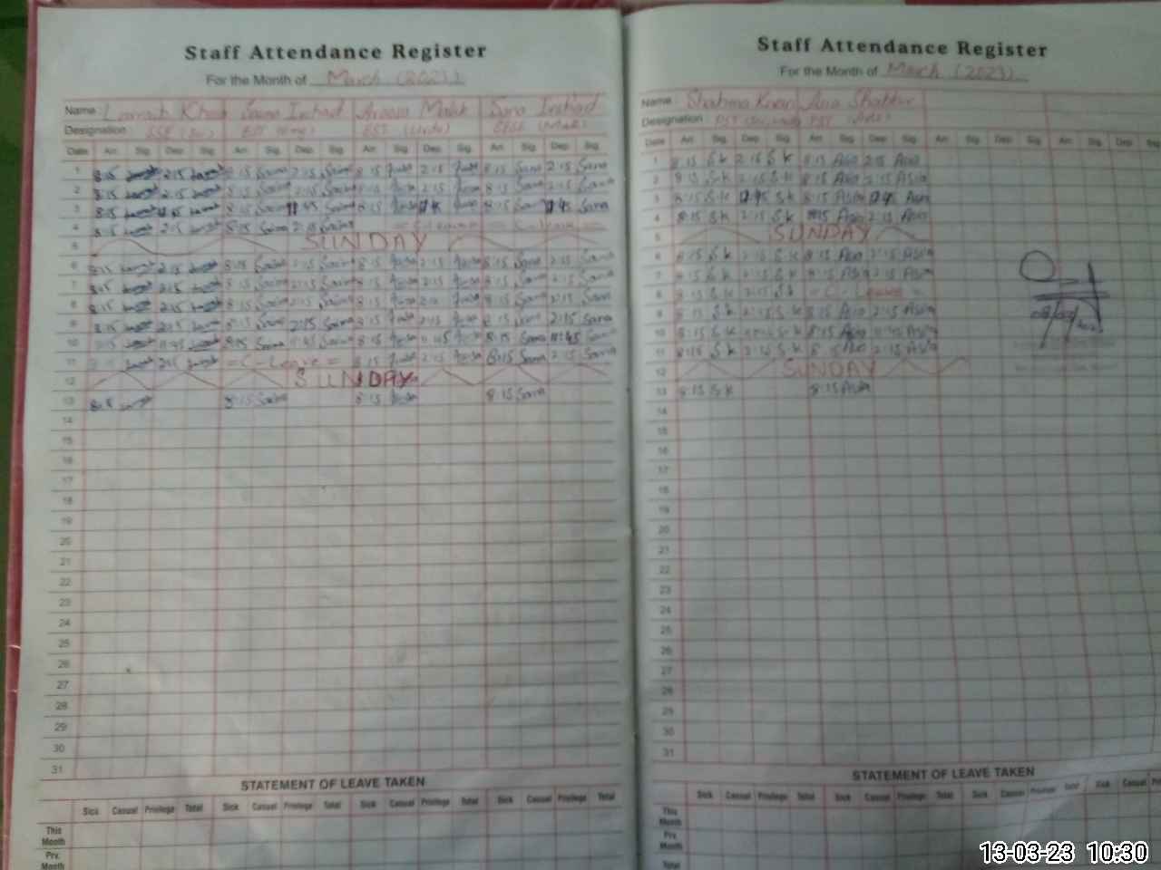 | CNIC | Full Name | Designation | R/C | Absence During Last Calender Month |