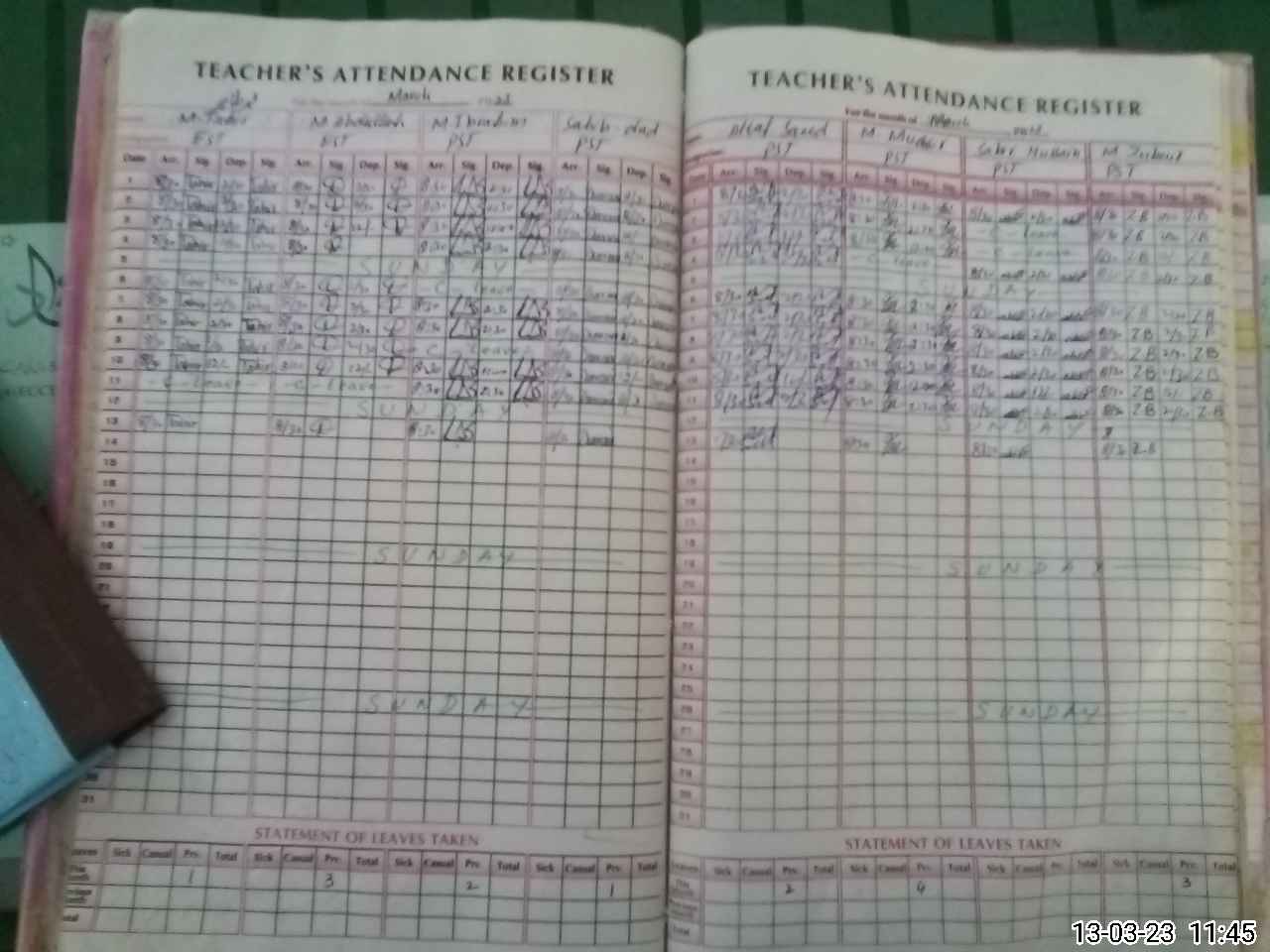 | Leave | Duty | Absent | Maternity | Medical | Ex- Pak |
