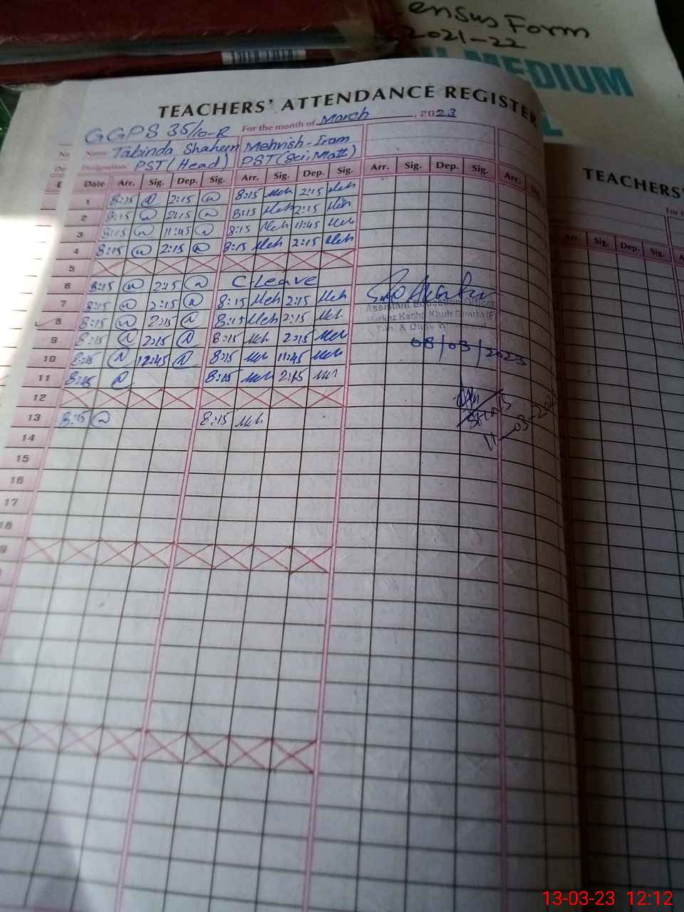 | Name: Me**** Ir**** Designation: (School Headmaster's/Headmistress's) PST Phone/Cell Number: 03**** |