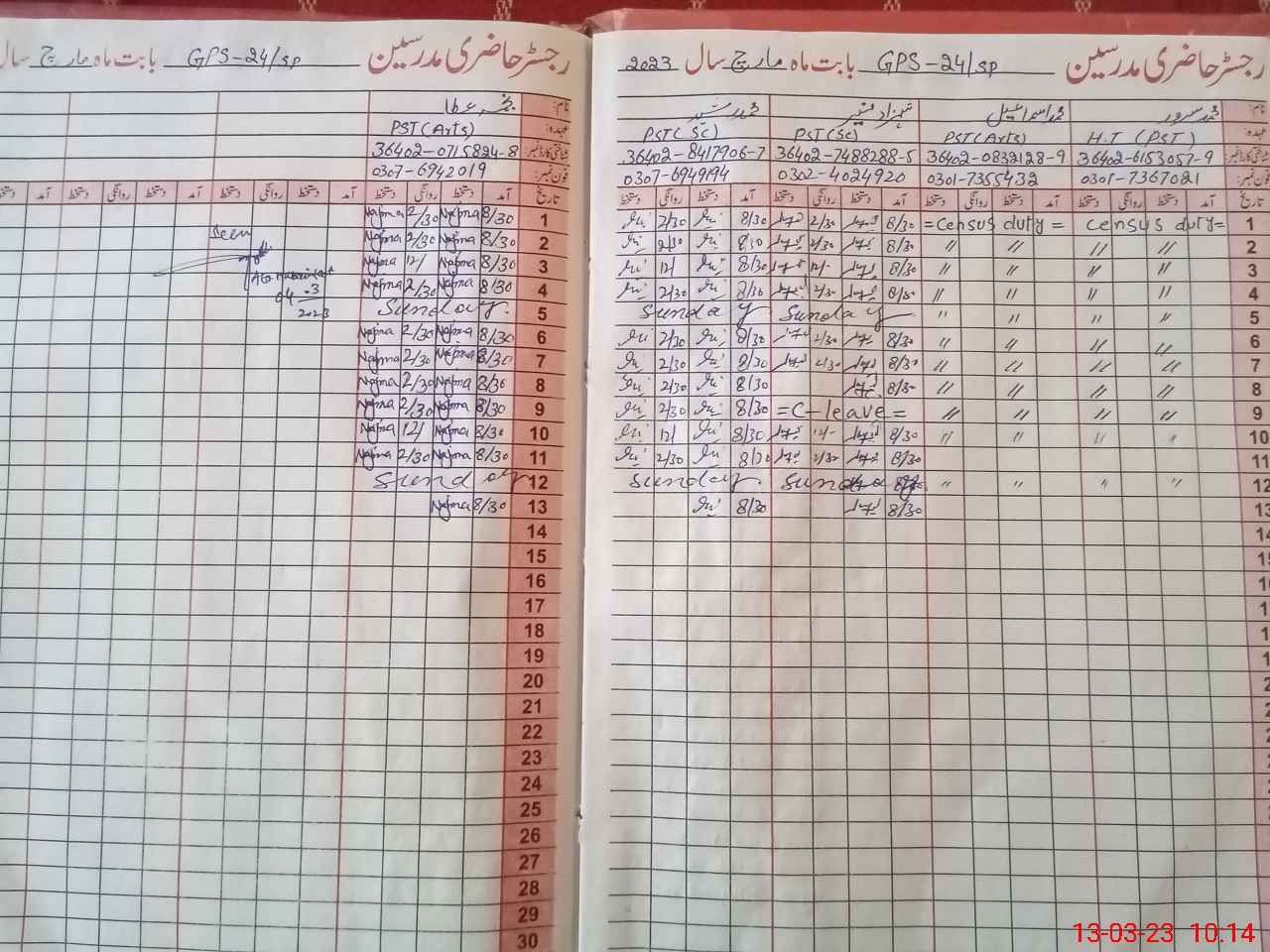 | Name: MO**** Is**** Designation: (School Headmaster's/Headmistress's) PST Phone/Cell Number: 03**** |