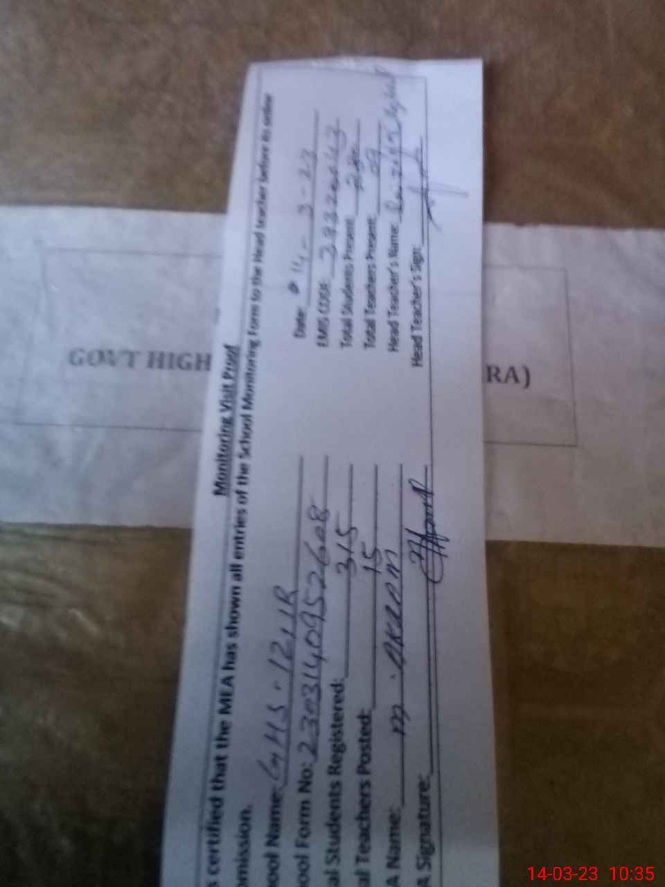 | Attendance Register | Head Teacher | MEA with School | Visit Proof |