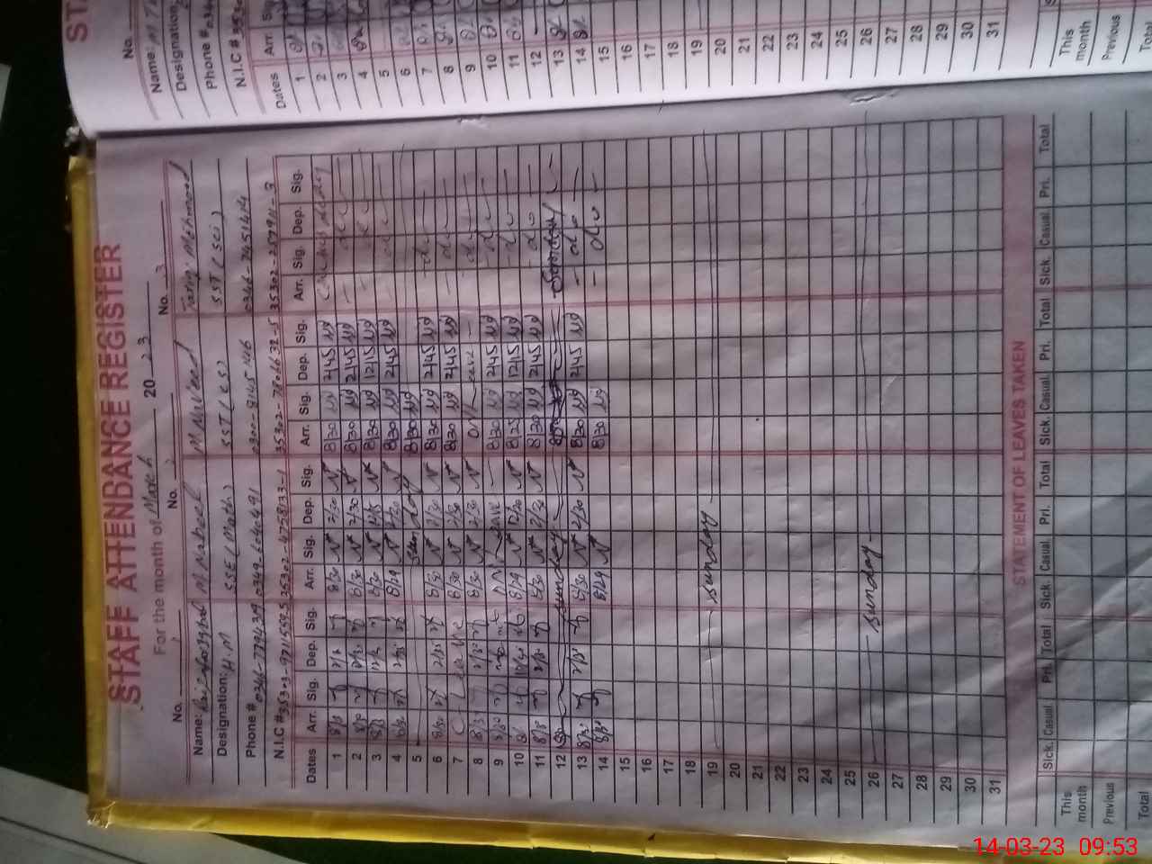 | CNIC | Full Name | Designation | R/C | Absence During Last Calender Month |