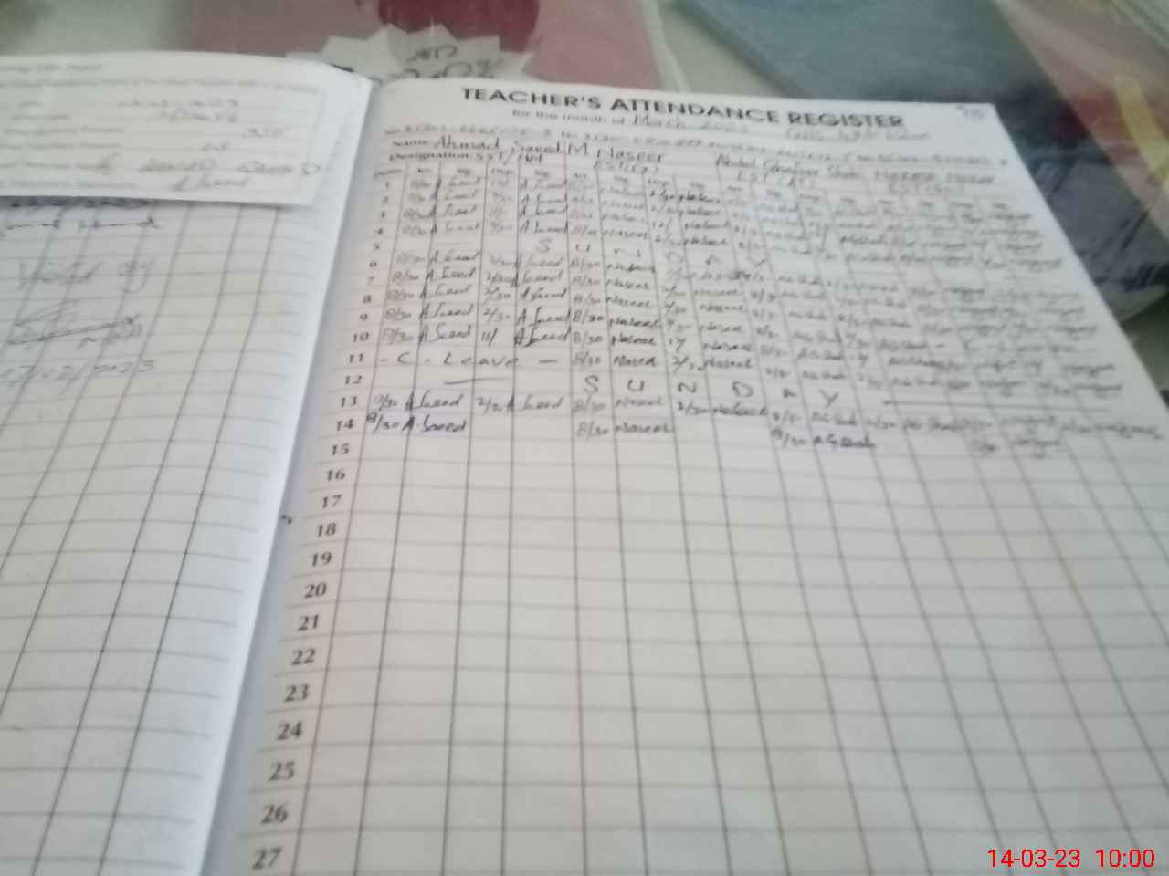 | Name: AH**** SA**** Designation: (School Headmaster's/Headmistress's) S.S.T.(Science) Phone/Cell Number: 03**** |