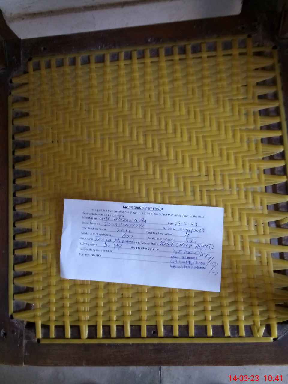 | Attendance Register | Head Teacher | MEA with School | Visit Proof |