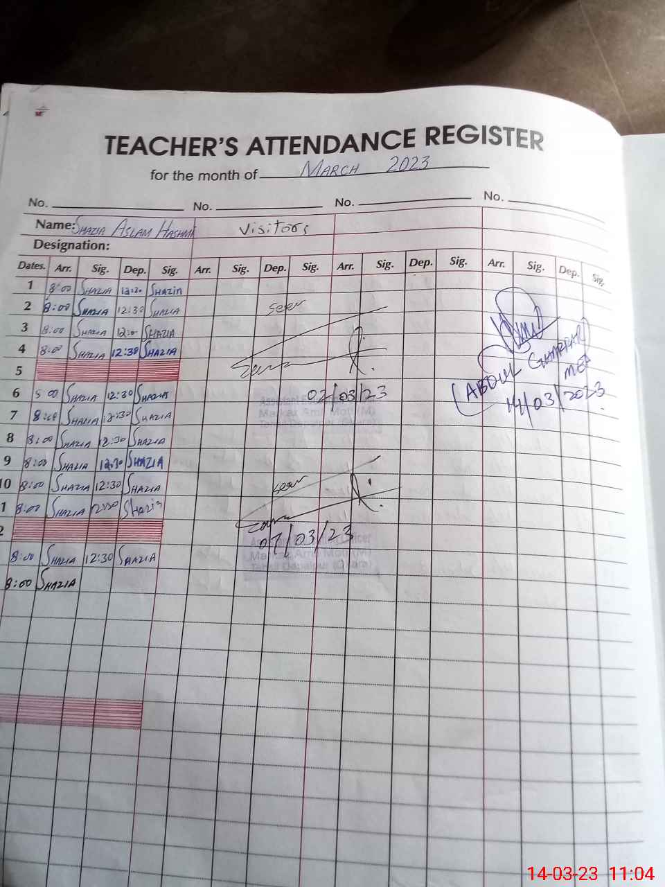 | Sr.No. | Visit Date | Designation | ||