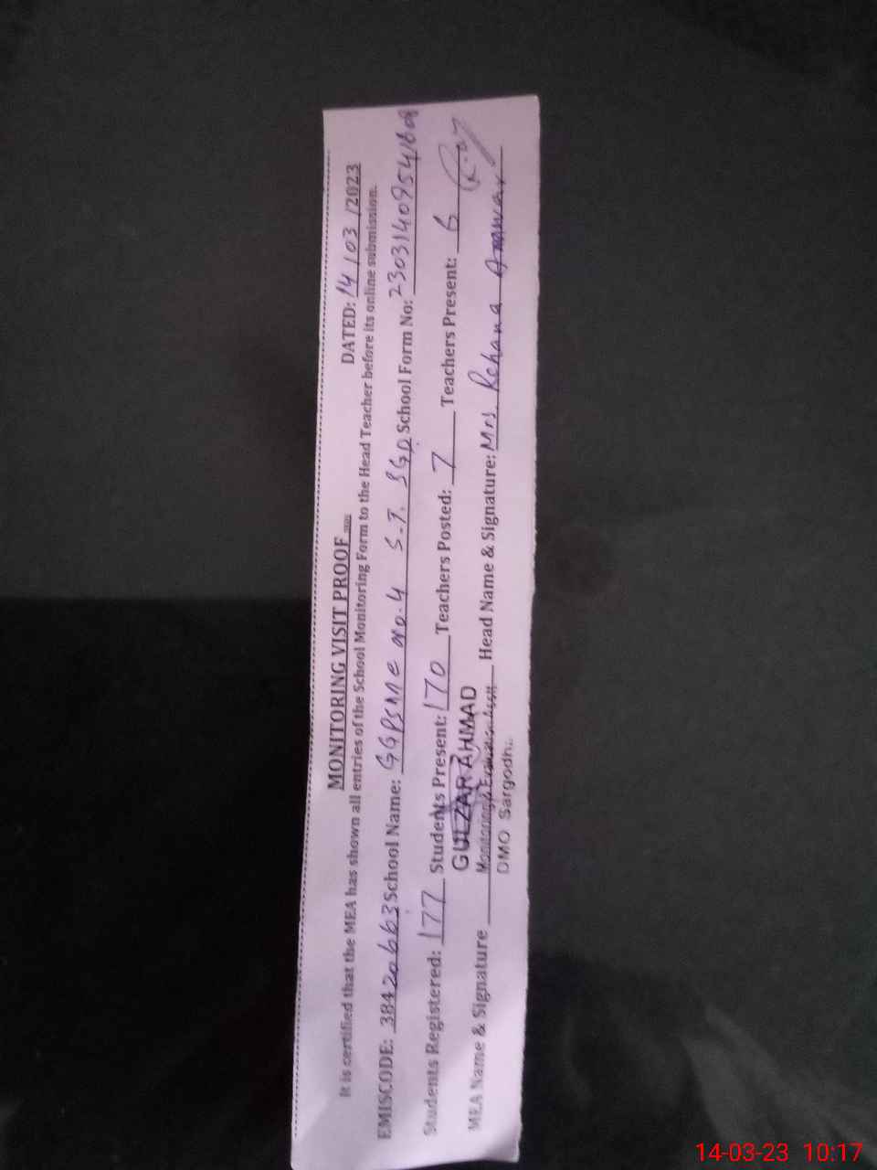 | EMIS Code: 38420663 | Name of School: GGPS MC NO.4 SATTELITE TOWN SARGODHA | |||