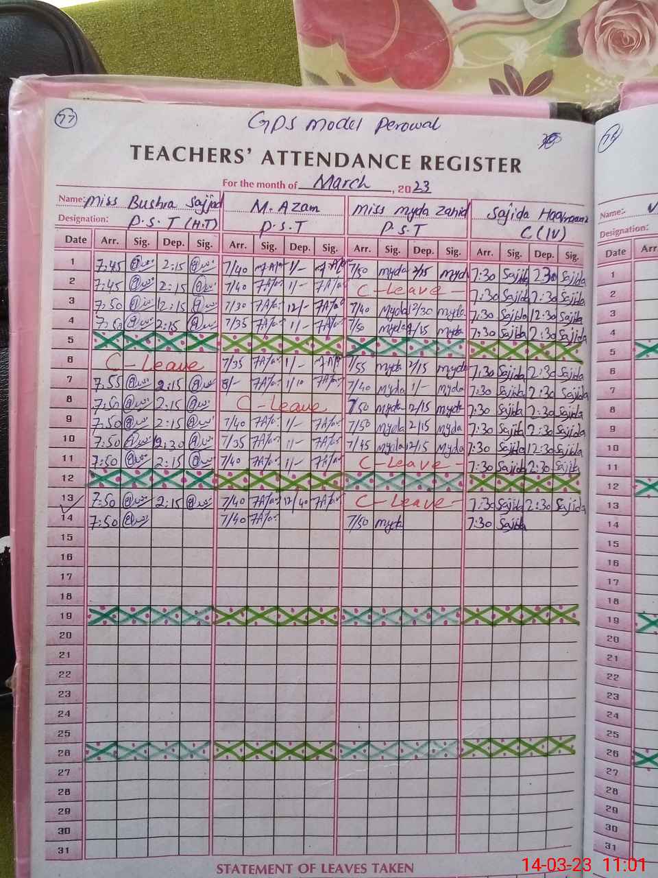 | Name: Uz**** Am**** Designation: (School Headmaster's/Headmistress's) PST Phone/Cell Number: 03**** |
