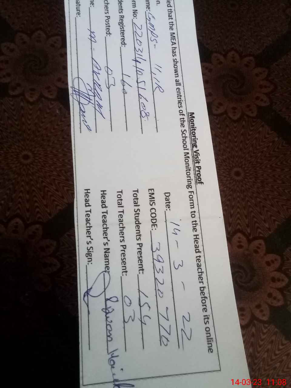 | EMIS Code: 39320770 | Name of School: GMPS CHAK NO. 11/1-R | |||