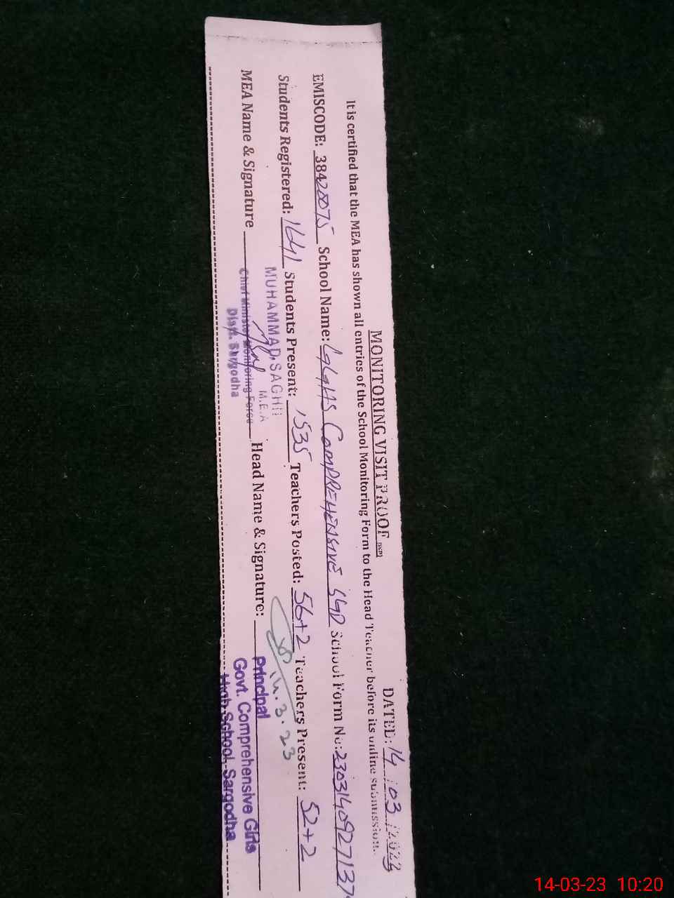 | EMIS Code: 38420075 | Name of School: GGHS COMPREHENSIVE OLD CIVIL LINE SARGODHA | |||