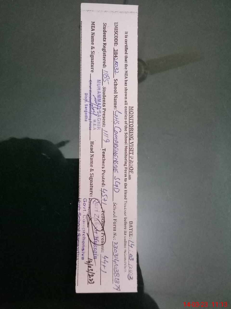 | EMIS Code: 38420032 | Name of School: GHS COMPREHENSIVE SARGODHA | |||
