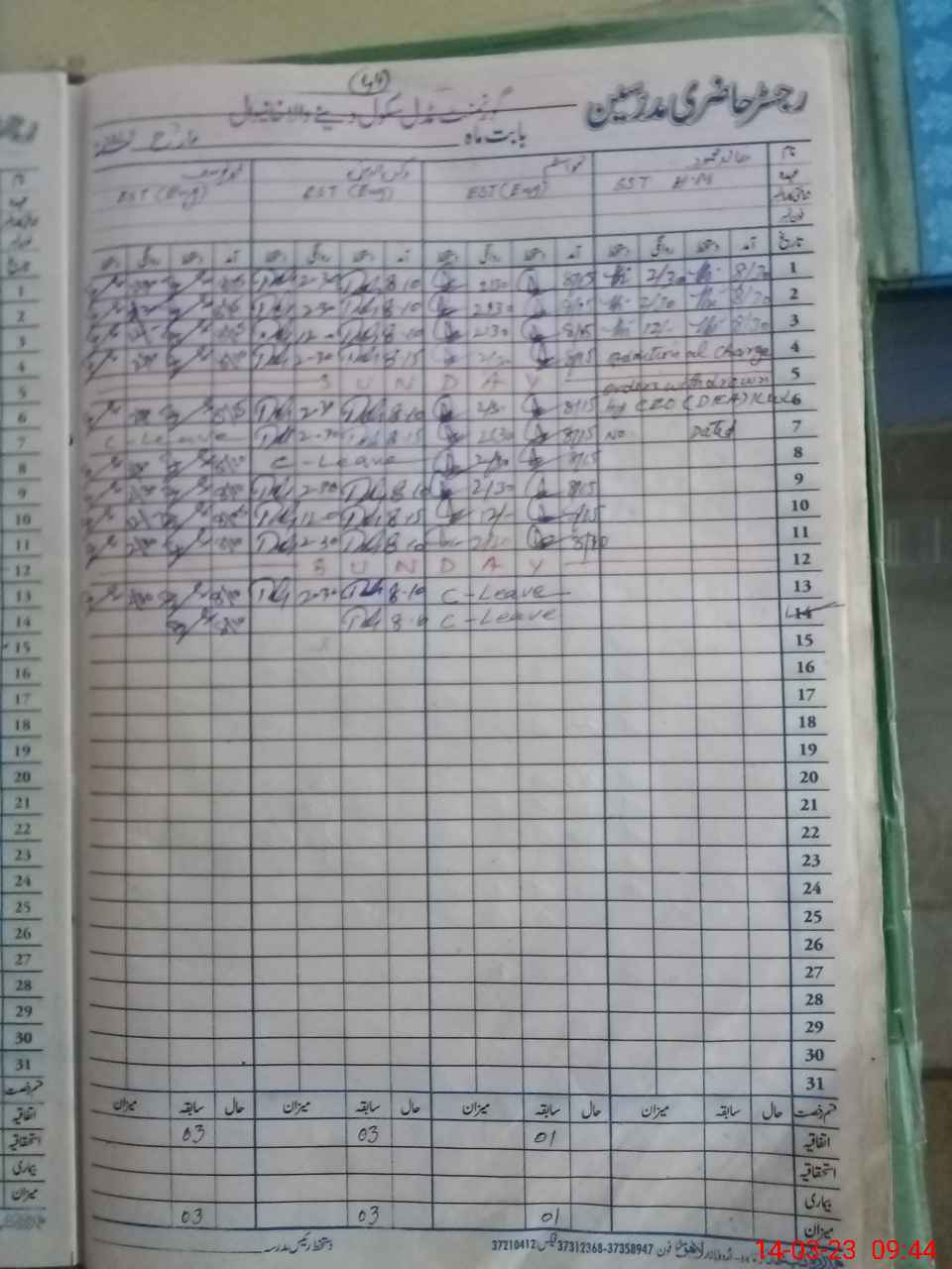 | CNIC | Full Name | Designation | R/C | Absence During Last Calender Month |