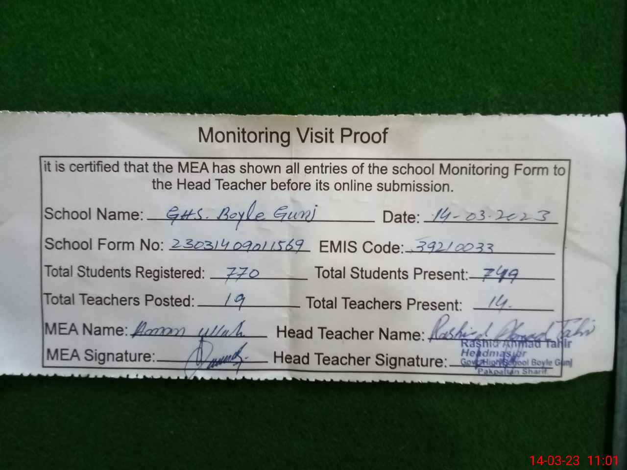 | EMIS Code: 39210033 | Name of School: GHS BOYLE GANJ | |||
