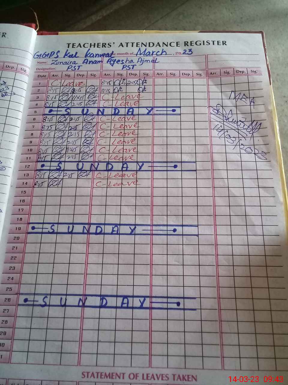 | 32**** | Ay**** Aj**** | PST | Regular | 2 | 0 | 0 | 0 | 0 | 0 | 0 | 0 | 2 | Absent (Un-Authorized) |