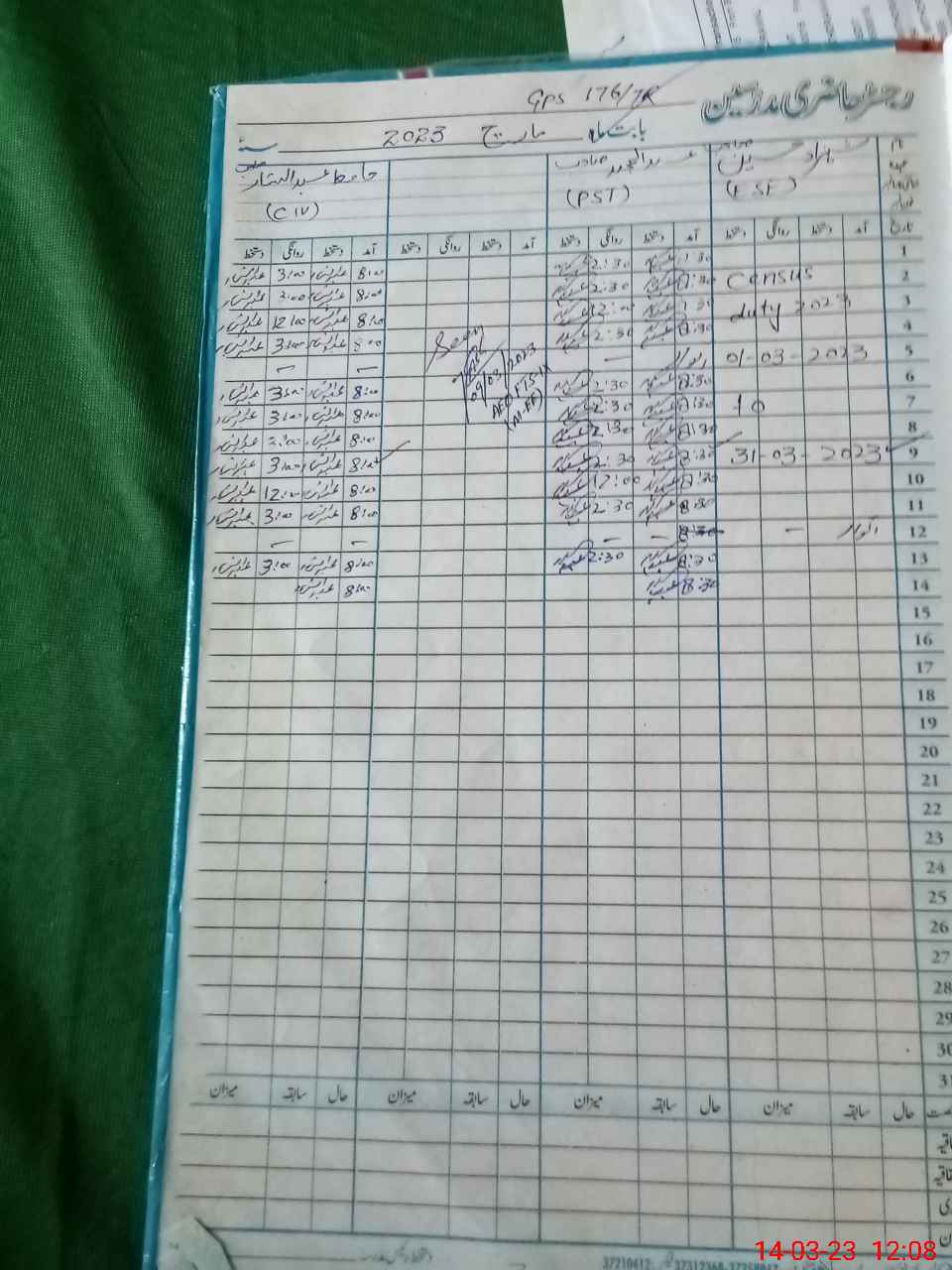 | CNIC | Full Name | Designation | R/C | Absence During Last Calender Month |