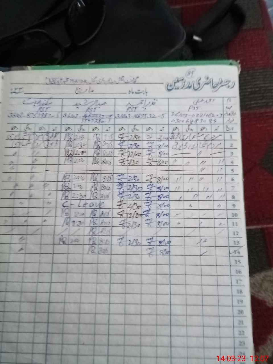 | CNIC | Full Name | Designation | R/C | Absence During Last Calender Month |