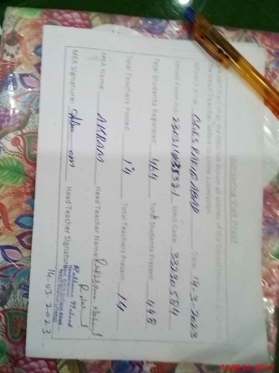 | Certified that this School was Inspected by the Undersigned MEA/DMO Today and the Information Stated Above is as Per Record. | |||||