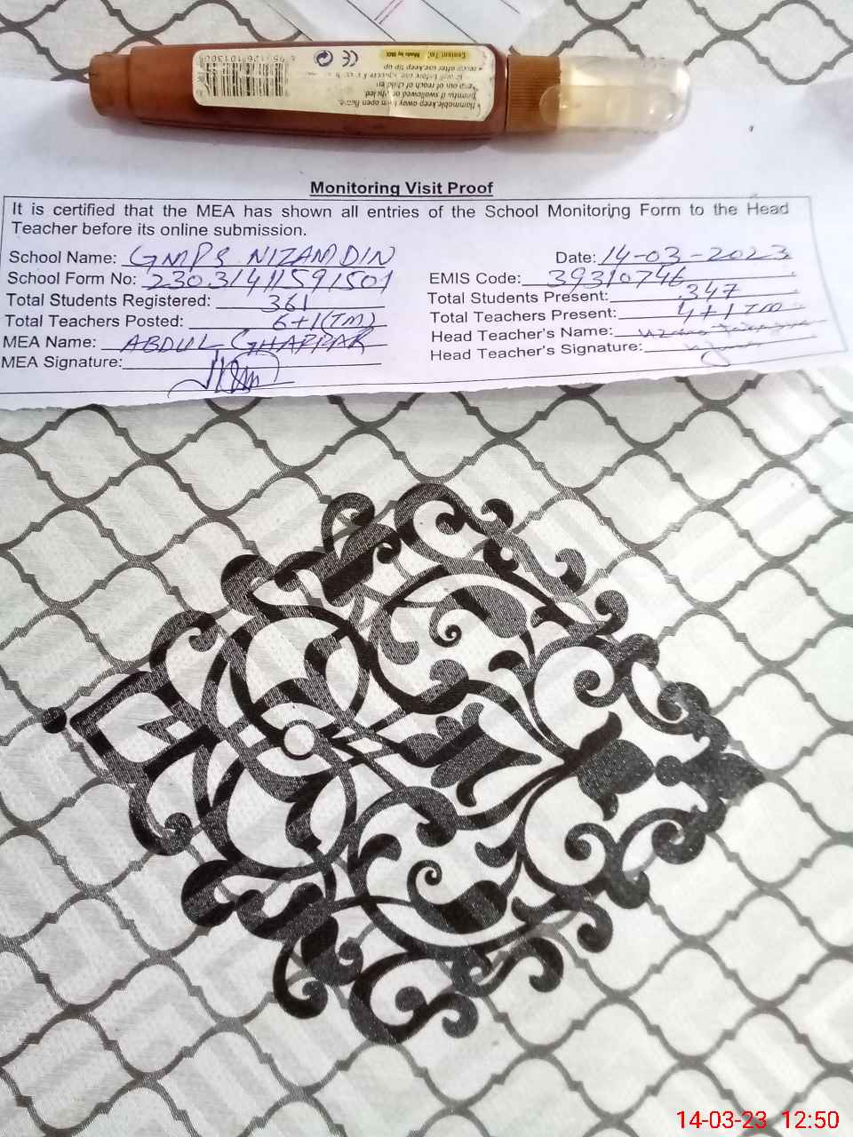 | EMIS Code: 39310746 | Name of School: GMPS NIZAM DIN | |||