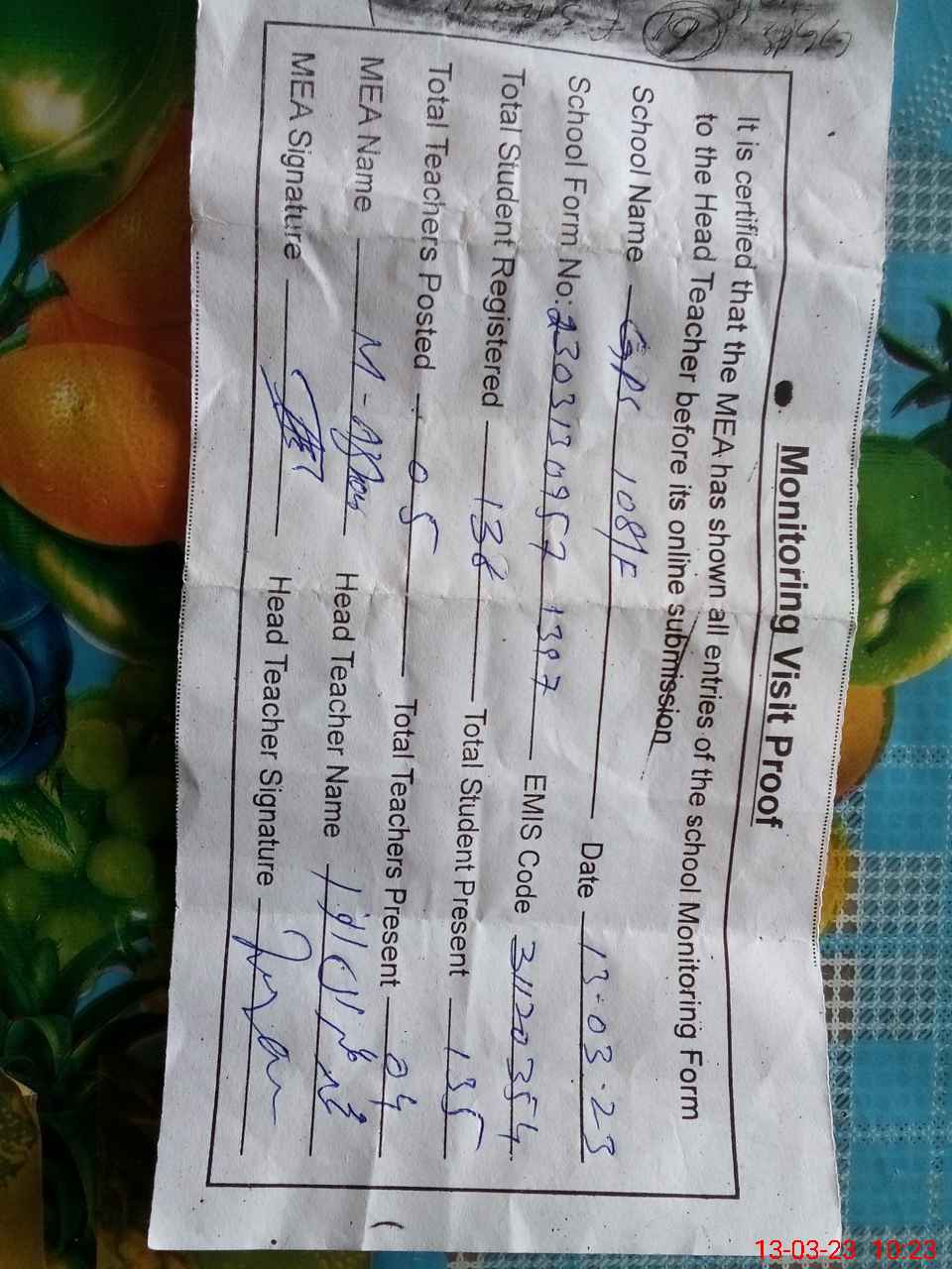| Name: MU**** Im**** Designation: (School Headmaster's/Headmistress's) ESt Phone/Cell Number: 03**** |