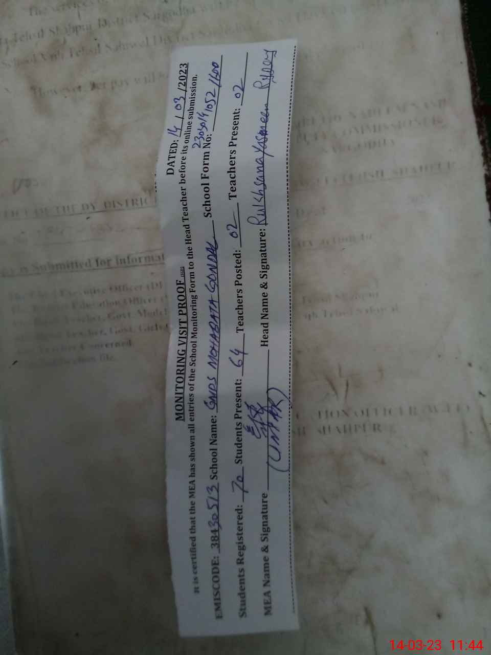 | EMIS Code: 38430513 | Name of School: GMPS MOHABTA GONDAL | |||