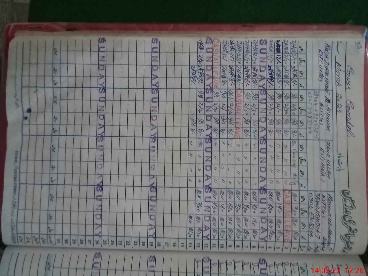 | CNIC | Full Name | Designation | R/C | Absence During Last Calender Month |