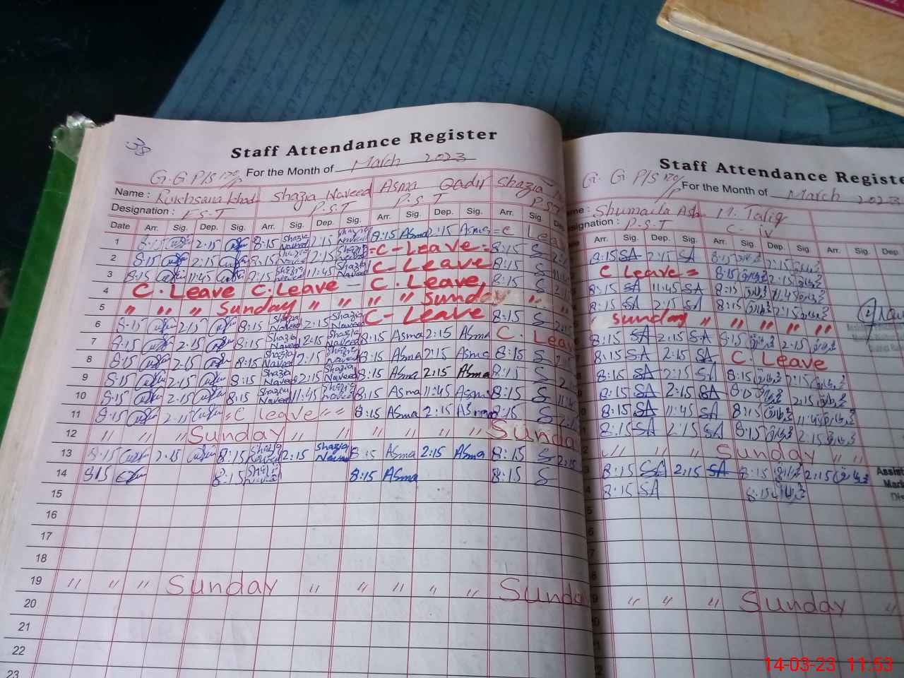 | Leave | Duty | Absent | Maternity | Medical | Ex- Pak |