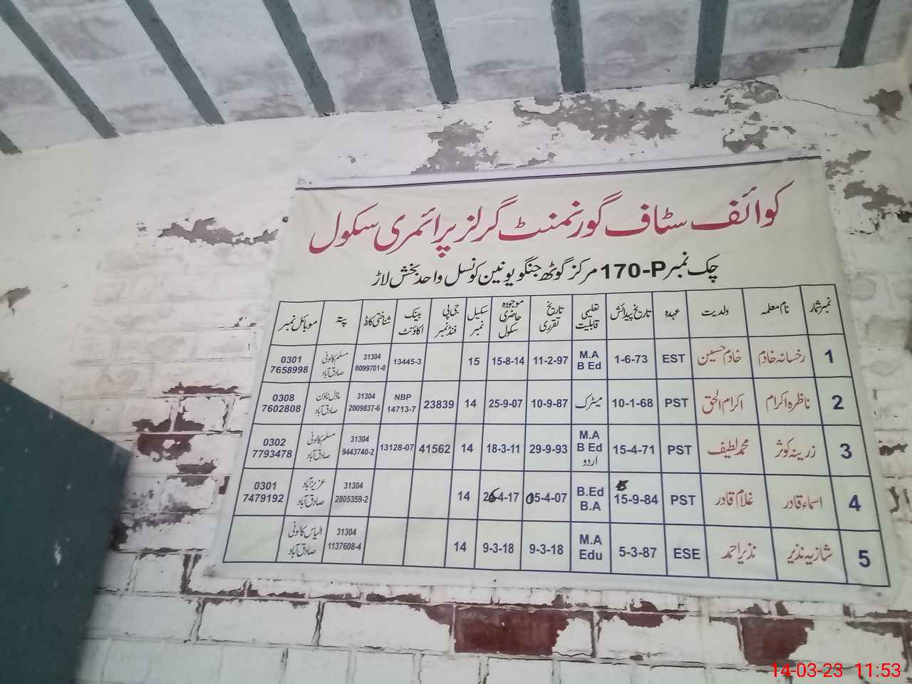 | Name: Ru**** Kh**** Designation: (School Headmaster's/Headmistress's) EST Eng Phone/Cell Number: 03**** |