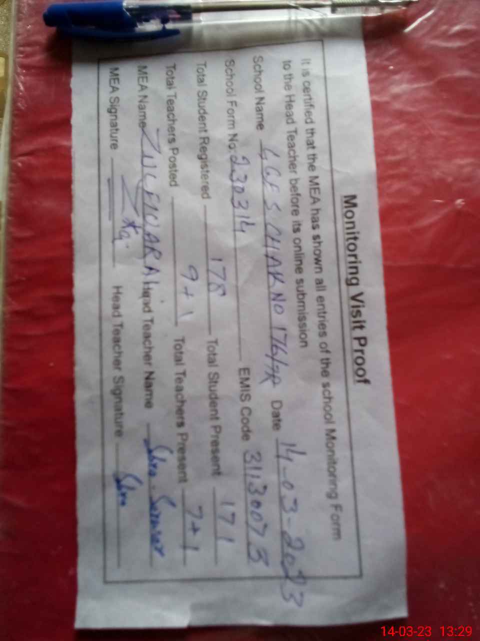 | EMIS Code: 31130073 | Name of School: GGES CHAK NO.176/7-R | |||