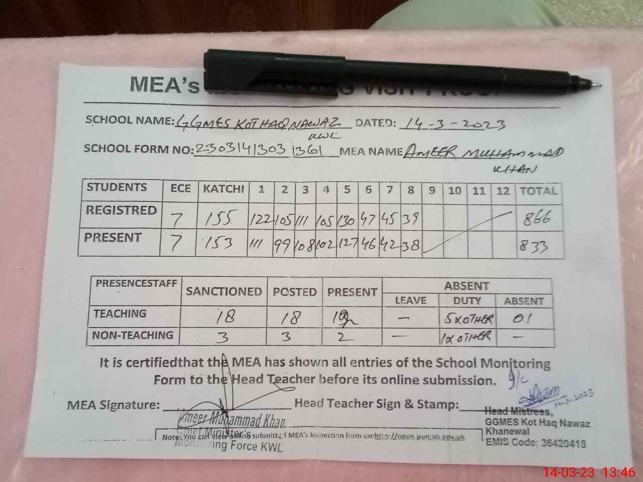 | EMIS Code: 36420418 | Name of School: GGMES KOT HAQ NAWAZ, OLD KHANEWAL | |||